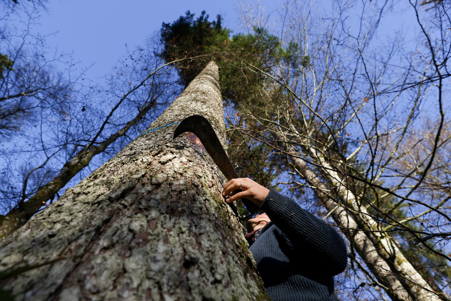 Après la saison de tavaillons, je continue d’exercer la charpente traditionnelle dans le neuf et la rénovation. Comme dans le tavaillon, j’aime partir dans la forêt, trouver des grumes de toutes essences à valoriser, pour répondre localement aux besoins des clients.
